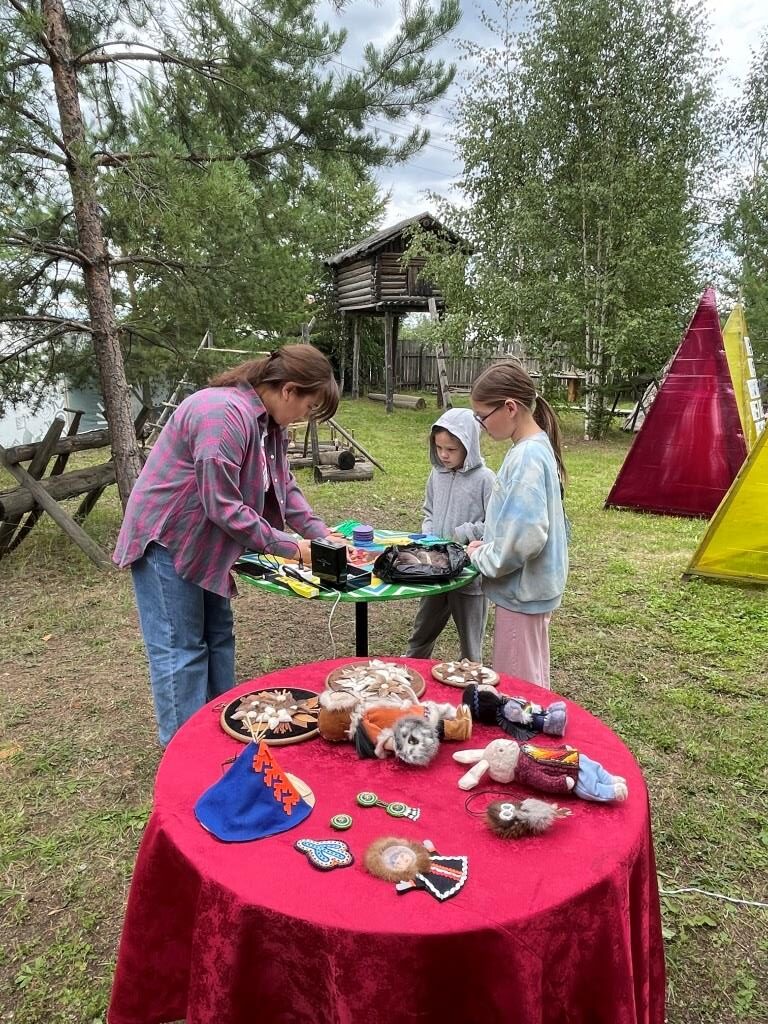 Так же была организована выставка декоративно-прикладного искусства и мастер-класс по изготовлению нагрудного украшения,продажа сувенирной продукции «Заповедник Тунгусский»