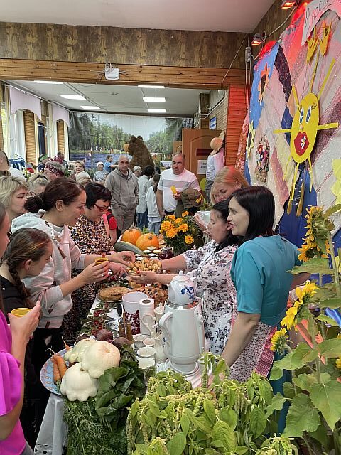 В фойе Дома культуры, царила праздничная атмосфера, играла яркими разноцветными красками. Организации подготовили для жителей и гостей выставку-продажу разносолов, выпечки и сувенирной продукции, проводили конкурсы и викторины, были оформлены фотовыставки, так же визитной карточкой праздника стал ростовой мишка, с которым желающие могли сфотографироваться.
